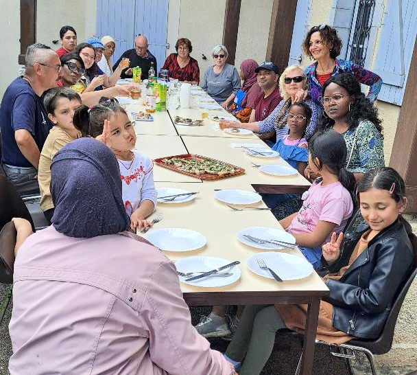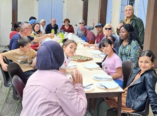Après avoir cuisiné ensemble dans la bonne humeur, nous avons eu la chance de déguster notre repas dehors, profitant d’un beau soleil printanier. Les enfants couraient autour des tables, les adultes discutaient, et chacun savourait les plats et l’instant présent.