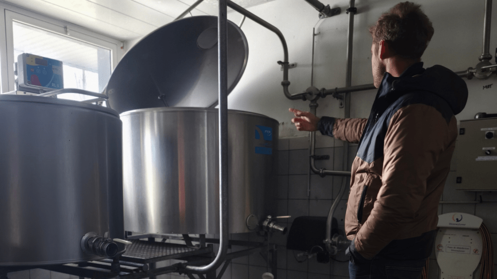 La production repose principalement sur le lait transformé en fromage AOP Ossau-Iraty et sur l’élevage d’agneaux destinés au marché espagnol. John a détaillé le cycle annuel de production, débutant en octobre avec les premiers agnelages, une période particulièrement intense qui s’étend jusqu’à février avec la mise-bas des agnelles. Cette phase comprend la traite (2 litres par jour et par brebis), l’allaitement des nouveaux-nés, ainsi que les soins sanitaires et alimentaires réguliers.