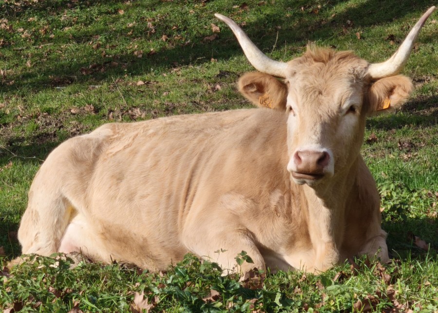 L’exploration s’est poursuivie avec la rencontre d’une partie du troupeau de vaches allaitantes en train de pâturer sur les prairies pentues proches du lycée. Ce troupeau, composé de vaches de race Béarnaise – une race rustique aux cornes en lyre – s’inscrit dans la volonté de l’établissement de préserver les races locales anciennes.