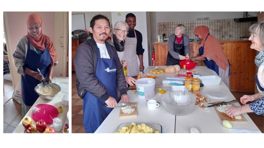 Dans une ambiance chaleureuse et détendue, notre dernier atelier cuisine a réuni bénévoles et réfugiés pour un moment de partage culinaire et humain essentiel. Petites mains agiles et grandes âmes généreuses se sont retrouvées autour des fourneaux pour concocter un délicieux repas fait maison.