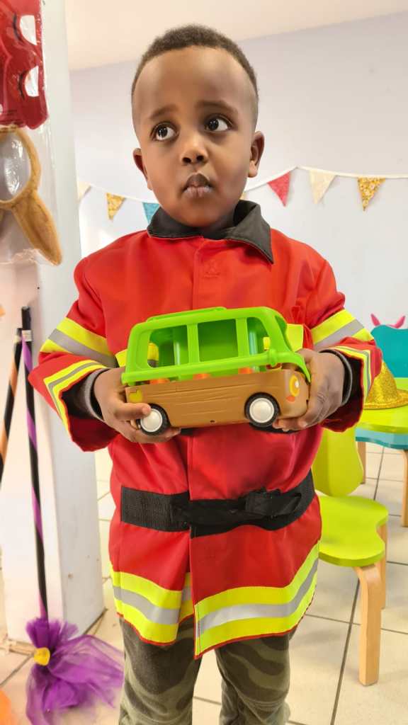Dès leur arrivée, les yeux des enfants pétillaient de curiosité. Les jeux de construction, les déguisements et les jouets colorés ont rapidement transformé l’espace en un véritable terrain de jeu.